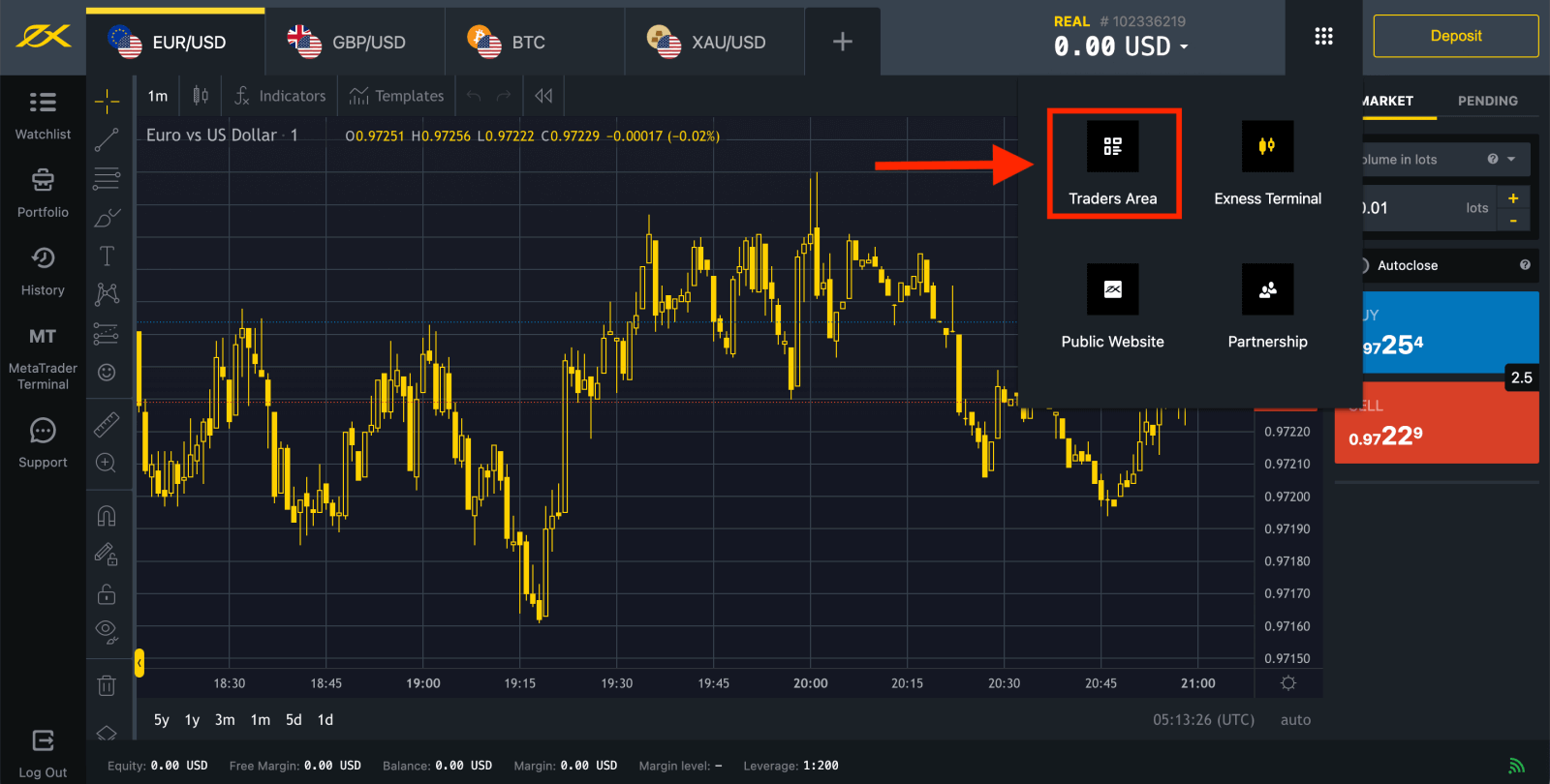 If you want to trade right on your browser. Click "Trade" -- "Exness Terminal".